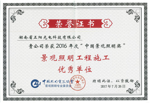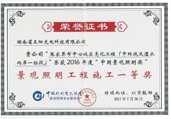 湖南省正陽光電科技有限公司是一家從事亮化工程及大型燈光藝術(shù)的設(shè)計、制作、安裝和維護(hù)于一體的專業(yè)化公司。公司資質(zhì)齊全、管理嚴(yán)謹(jǐn)、技術(shù)先進(jìn)、實力雄厚,取得了城市及道路照明工程專業(yè)承包壹級資質(zhì)、照明工程設(shè)計專項甲級資質(zhì)、機(jī)電工程施工總承包貳級資質(zhì)、施工勞務(wù)等資質(zhì)、國家高新技術(shù)企業(yè)、國家“重質(zhì)量·守誠信”示范企業(yè)。